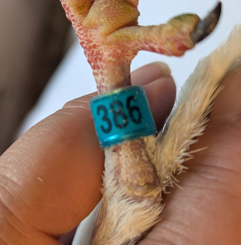 Following the national organization code, the year of birth, and the club code, will be a number that is unique to that bird. Here, this is bird number 386.